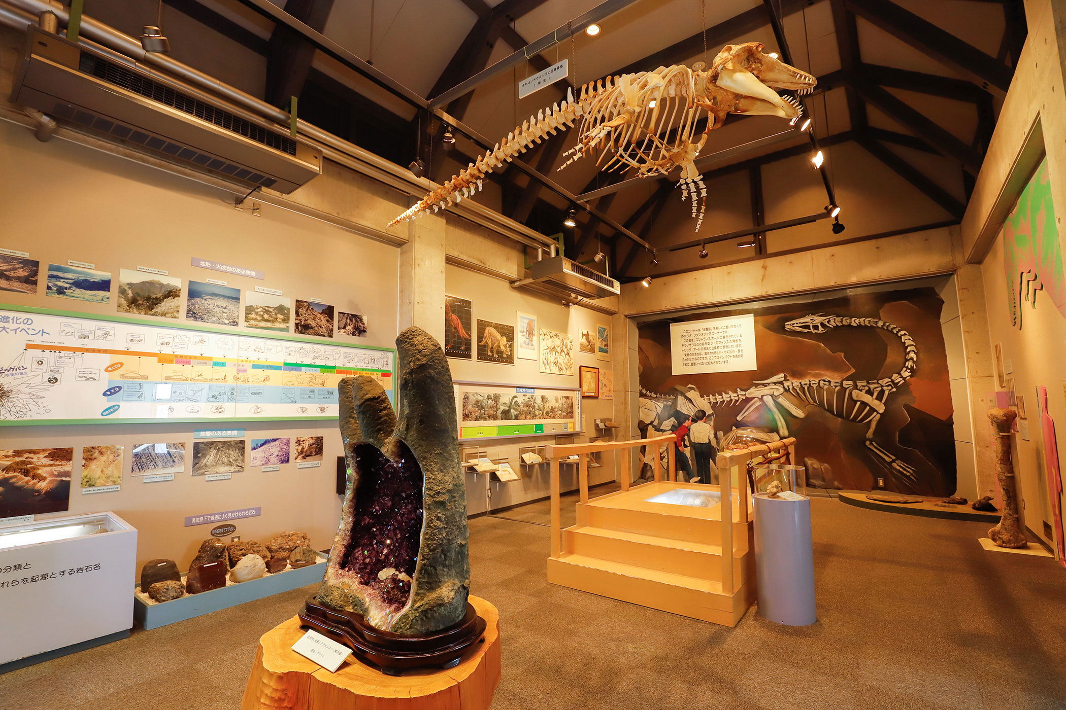 地球の成り立ちなど地質研究の一端に触れられる展示も充実しており、夏休みの自由研究にもうってつけ。