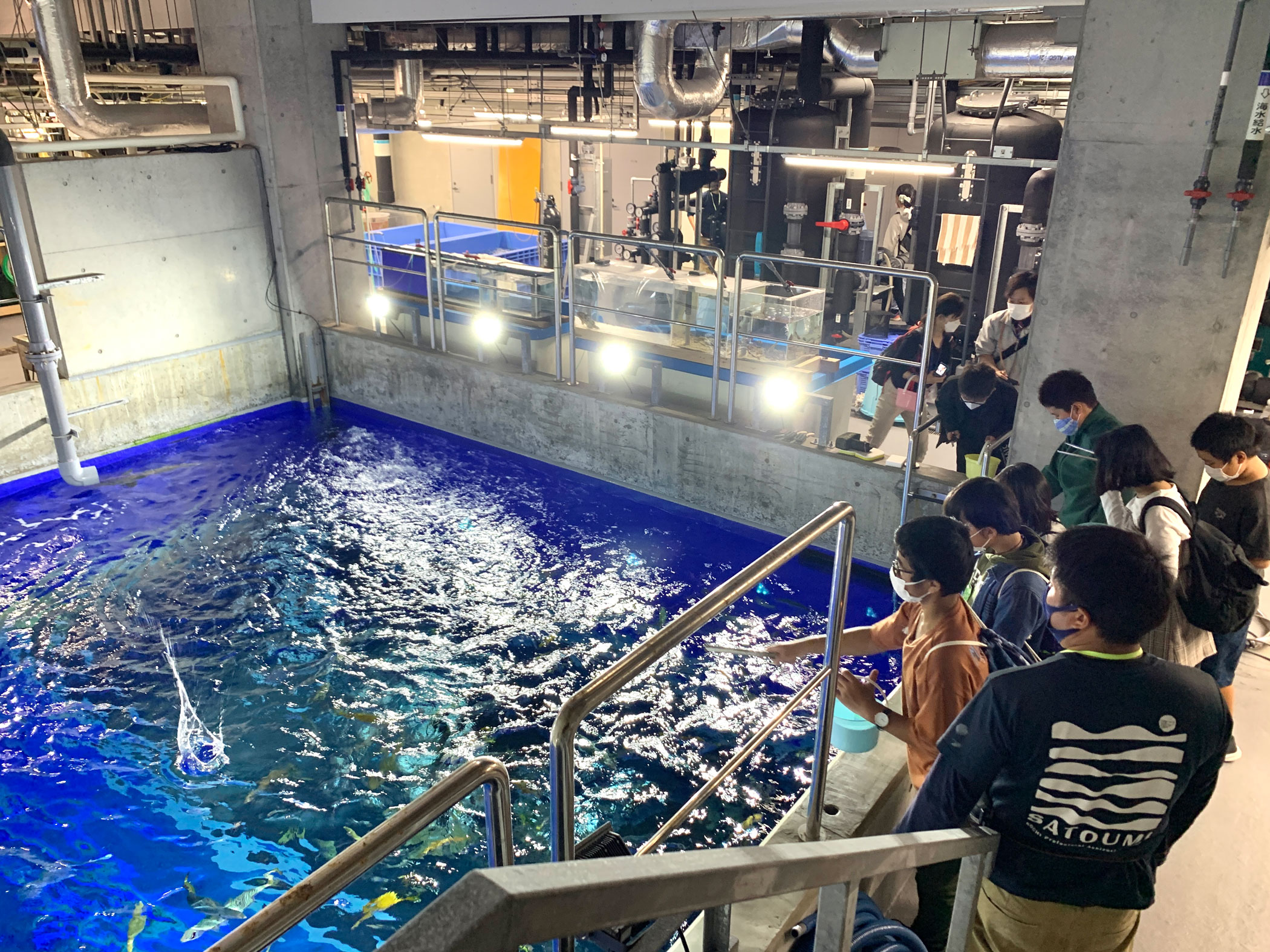 バックヤードツアーでは、普段は公開されていない展示の裏側を見学できます。水槽を支える設備や、展示前の生きもの達などの様子を飼育員の解説付きで見学でき、外洋水槽でのエサやり体験も楽しめます!
