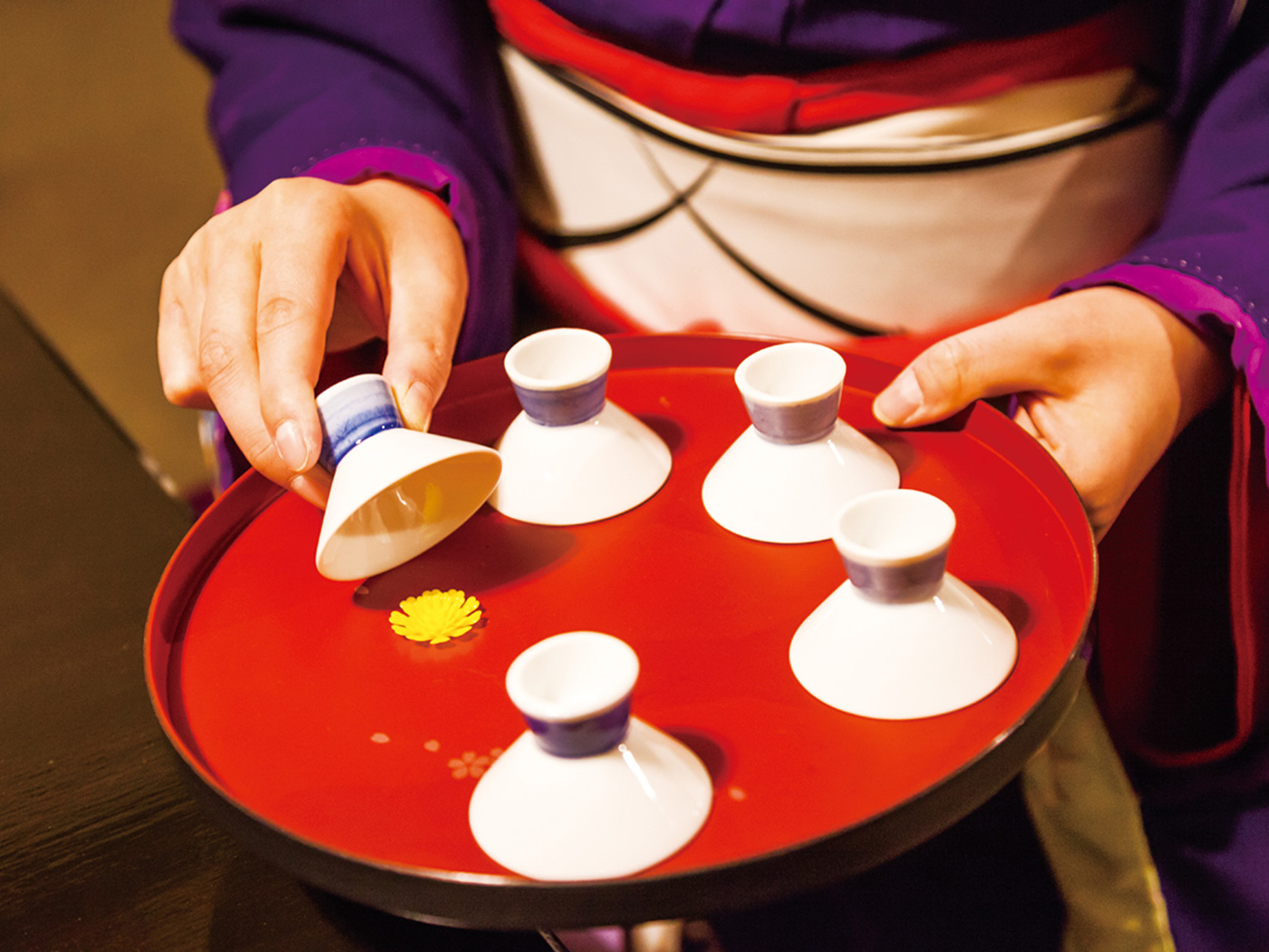 敬意と労いの気遣いから始まった、互いに酒を注ぎ合う「献杯・返杯(けんぱい・へんぱい)」や、唄にのせてコマを回し、描かれた絵柄の大小ある杯で飲む「可杯(べくはい)」、人数分の裏返しにされた盃を順番にあけ、盃に隠された菊の花を探し当てた人が、空いている杯の数だけ注いで飲める「菊の花」など、飲めや歌えや大盛り上がり間違いなしの土佐流のお座敷遊び。