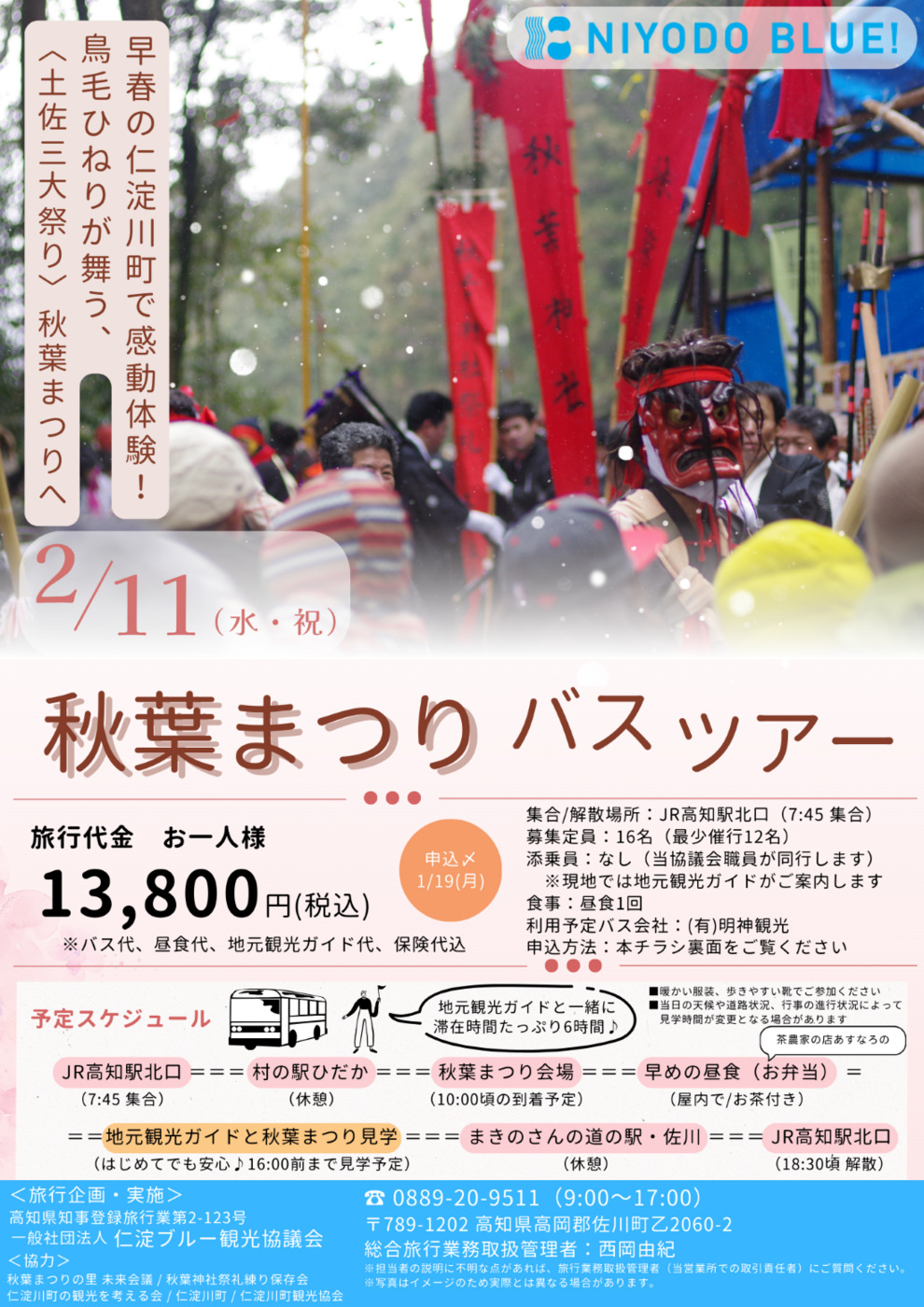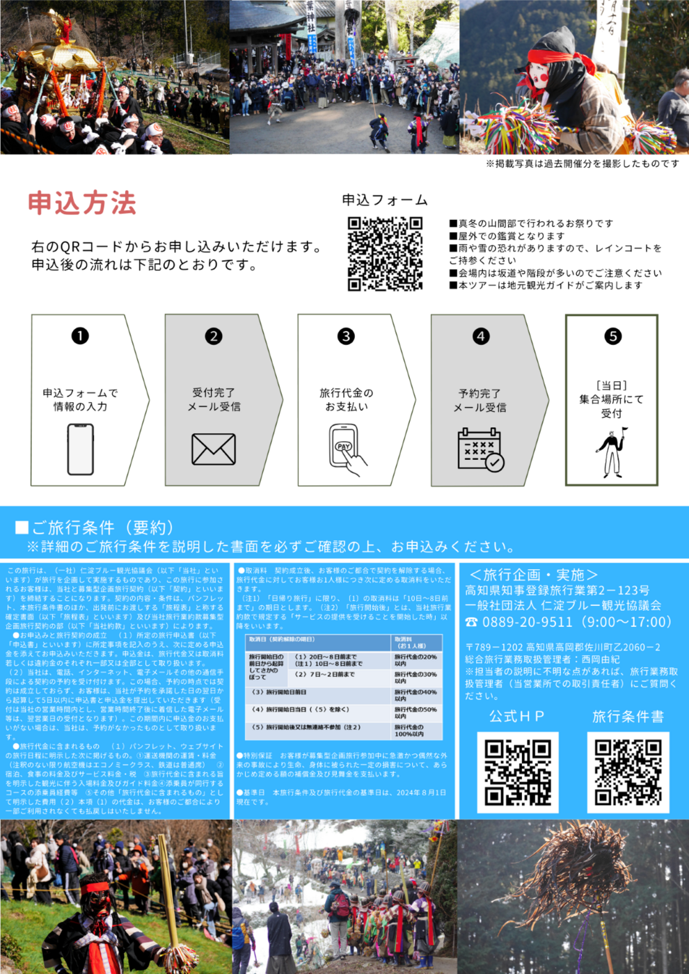 電話番号:0889-20-9511 Fax番号:0889-20-9522 メールアドレス:kanko@niyodoblue.jp - ※本ツアーのチラシは申込フォームにてご確認いただけます。