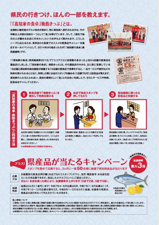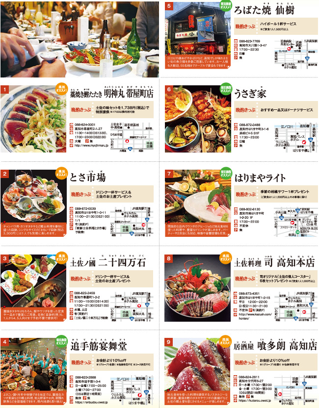 「高知家の食卓 晩酌きっぷ」は、高知県民が選んだ「観光客におすすめしたいお店」を基にしたお得な飲食体験きっぷです。